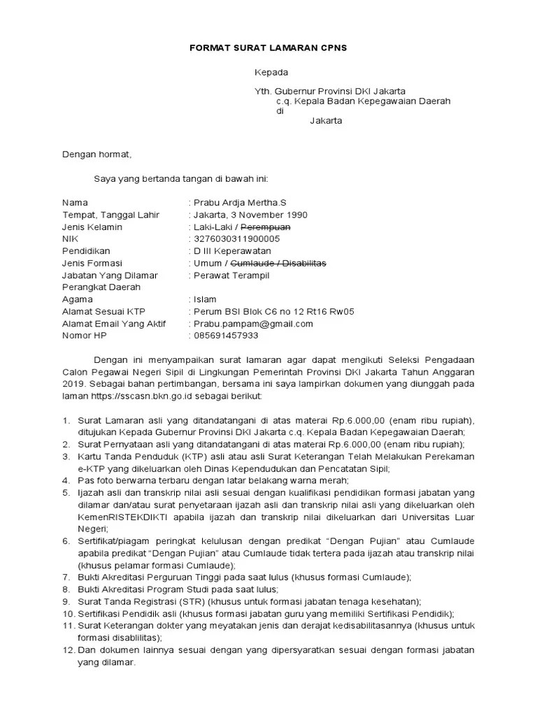 Contoh Pesyartan Lamaran Cpns Pemprov Dki - Download Surat Lamaran Cpns Pppk Pemprov Dki Jakarta 2021 Lengkap Surat Pernyataan Dan Rincian Formasi Seputar Lampung - Kepala kantor wilayah kementerian agama provinsi kalimantan tengah di.. Persyaratan sesuaikan dengan formasi yang dilamar. Surat lamaran sebaiknya dibuat dengan . Kepala kantor wilayah kementerian agama provinsi kalimantan tengah di. Disertai dengan keterangan beberapa dokumen lain yang telah diunggah sebagai syarat seleksi administrasi; Format surat lamaran untuk cpns dki jakarta sesuai dengan yang terlampir di pengumuman sekertaris daerah atau form .